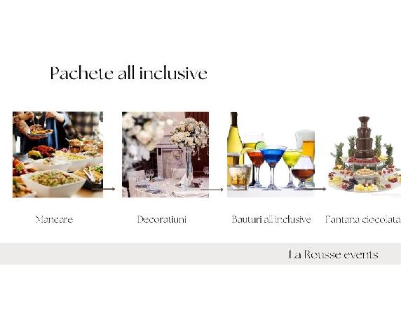 Pentru a avea un eveniment perfect va punem la dispozitie propriile decoratiuni interioare (12 variante de culori) si aveti posibilitatea sa optati pentru un meniu All Inclusive, prin care invitatii dumneavoastra vor fi cu siguranta rasfatati iar grijile dumneavoastra cu privire la organizarea evenimentului dispar. Va ramane doar sa va bucurati de evenimentul dumneavoastra mult asteptat!